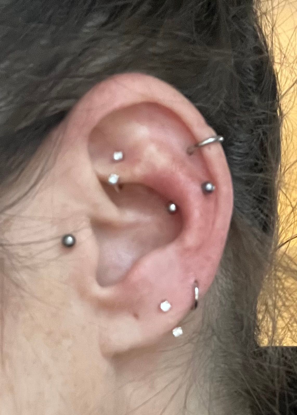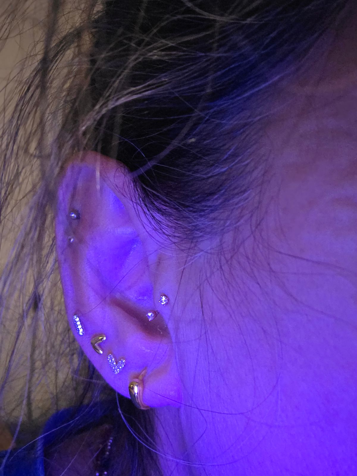 These Frankie hoops are so great. They looks wonderful stacked with other pieces from you! The size is really nice also for the holes they are in. Definitely very hard to put on at first but once you figure it out it’s a lot easier. Prob gonna move them to a hole higher up so can get others to stack in between