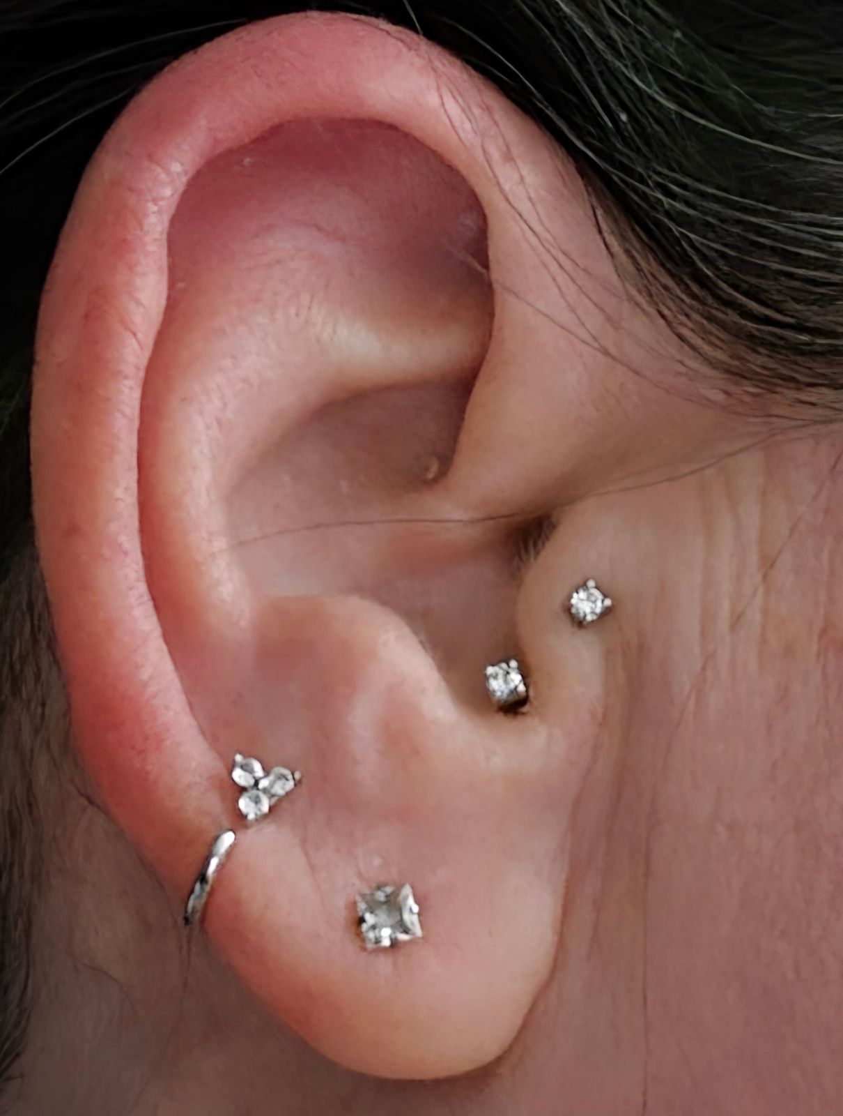 Internally threaded solid 14 karat gold piercing with lab diamonds. Suitable for lobes, helix, forward helix, rook and tragus. Please note this item is sold as a single earring.
