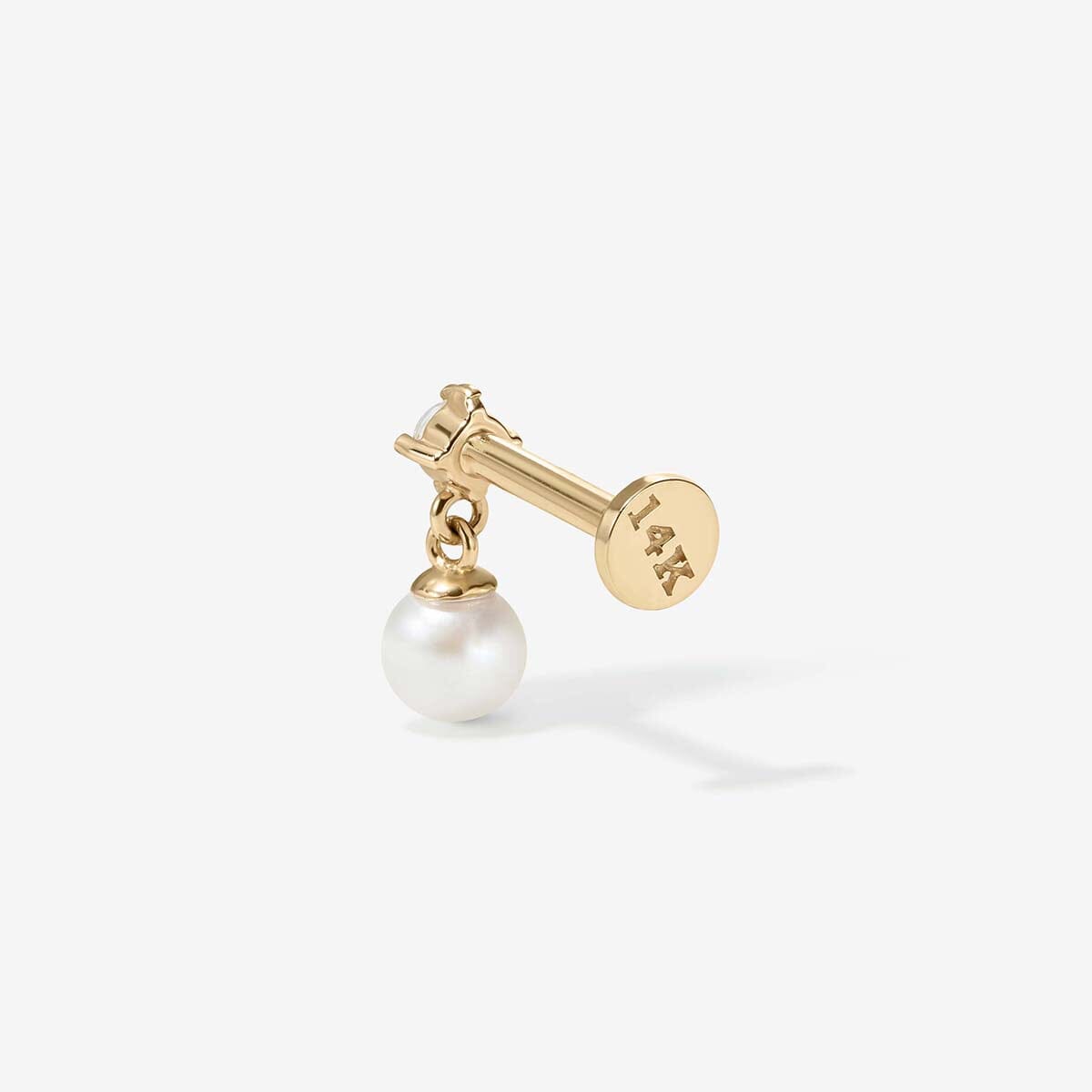 14 karat solid gold, freshwater pearl, lab diamond, single earring