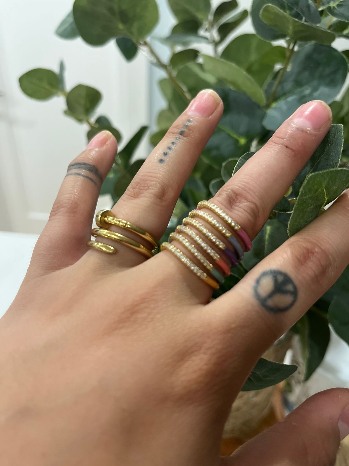 This ring set is adorable and there are so many fun ways to wear them. I've gotten a lot of compliments on them. The only downer is that I ordered a size 9 and it's very small. Seems closer to an 8 compared to my other rings so I can't wear them on my first and middle finger of my right hand. Not a huge deal.