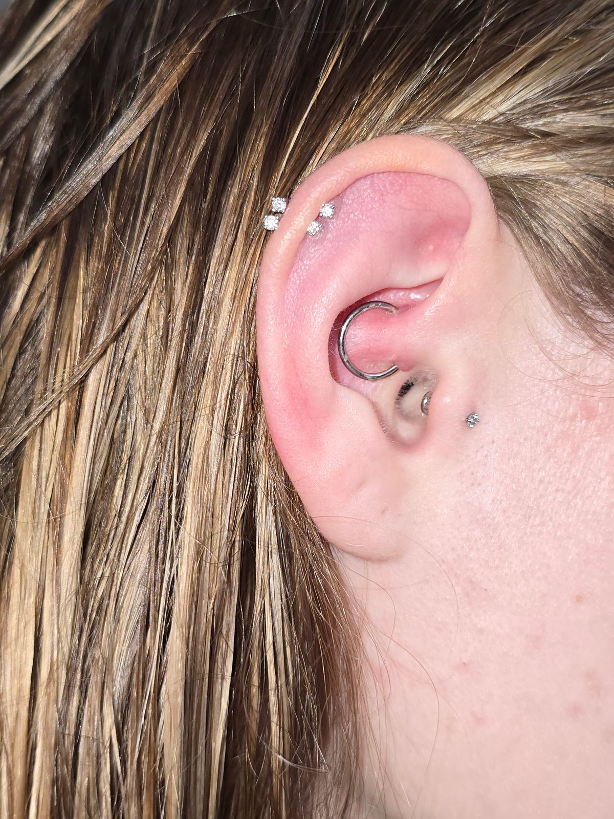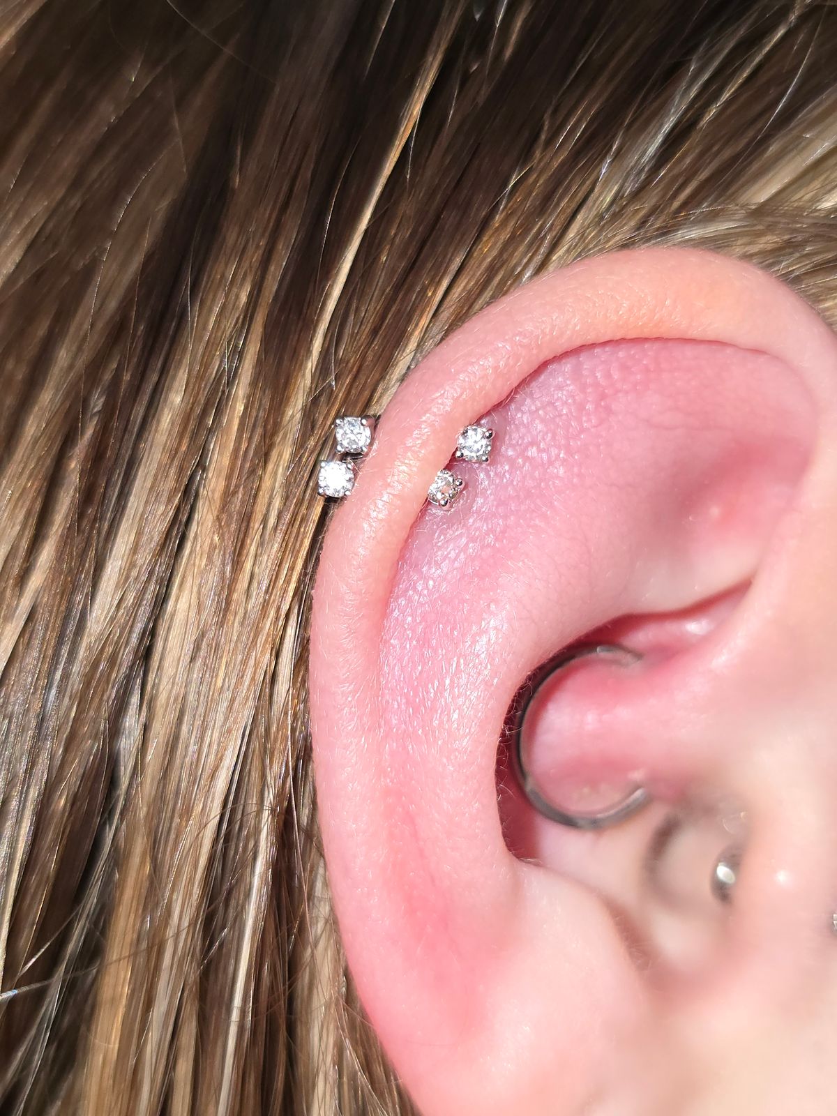I originally bought these for my tragus's but I ended up putting them in my helix and they work perfect. My double helix is only 4 months old but the titanium jewelry it was pierced with seemed to really irritate and kept causing large bumps. I decided to put my 7mm u hoops in to see if the swelling would go down and immediately within a few days the swelling was way down, I went and put in the 5mm u hoops and now the bumps are barely even there and my ear is so much happier! The diamond heads are a bit of a bugger to get screwed in but you just have to be patient. The customer service is also very good, they have been incredibly helpful.
