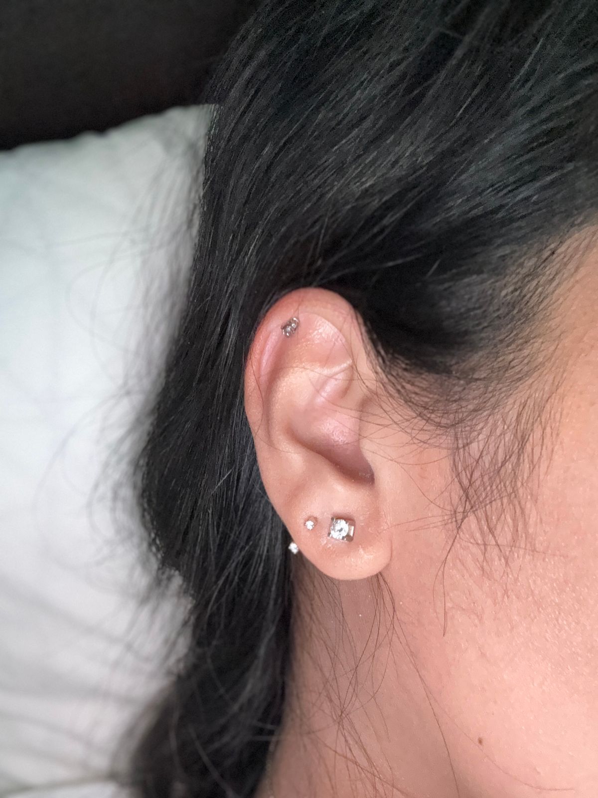 I originally bought these for my tragus's but I ended up putting them in my helix and they work perfect. My double helix is only 4 months old but the titanium jewelry it was pierced with seemed to really irritate and kept causing large bumps. I decided to put my 7mm u hoops in to see if the swelling would go down and immediately within a few days the swelling was way down, I went and put in the 5mm u hoops and now the bumps are barely even there and my ear is so much happier! The diamond heads are a bit of a bugger to get screwed in but you just have to be patient. The customer service is also very good, they have been incredibly helpful.