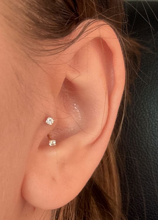 Internally threaded solid 14 karat gold piercing with lab diamonds. Suitable for lobes, helix, forward helix, rook and tragus. Please note this item is sold as a single earring.