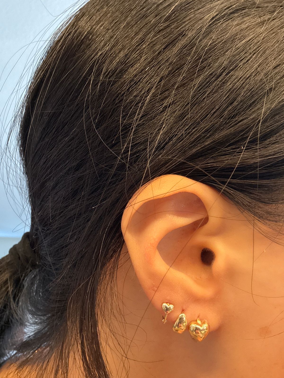 My stacks needed a refresh as I previously was gifted Adornodeʻs gold plated set 3 years ago(!) and wore them 24/7- doing absolutely everything (swimming in the sea, jiu jitsu, you name it). Of course, my poor set started to tarnish. I went in knowing I could trust their quality but decided to splurge to 14k this time as I didnʻt want the same thing to happen. I built a heart ear stack and have not taken them off since I got them! Again, these 5 earrings are here to stay!