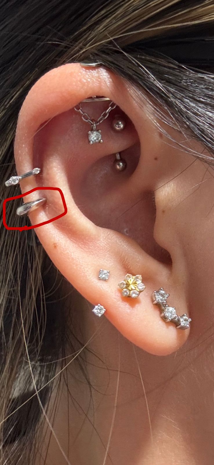 This little earring is so cute. I bought the 5mm for my helix (12 year old piercing) but it turned out to be too small. I have small ears but my piercing still acts up so it felt a bit tight at times. If you are buying for a single helix that isn’t particularly low on your ear, I would recommend a longer post. I just wear this on my second lobe now and it’s still cute!