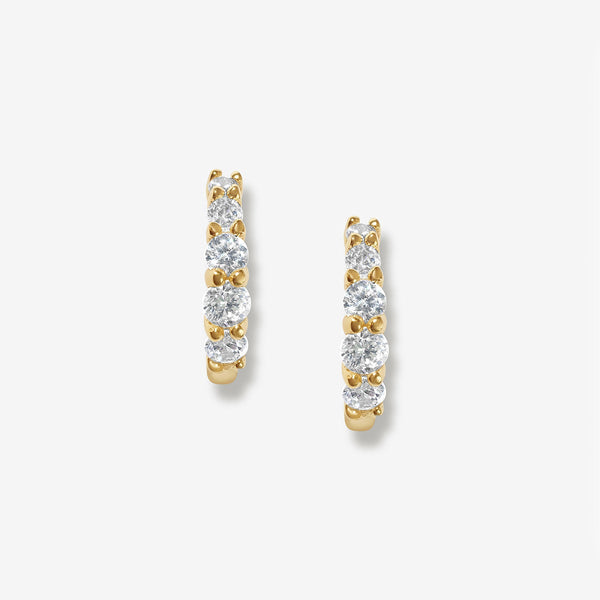 Part of our signature Adorn Luxe collection, these sterling silver hoop earrings feature cascading round crystals on a huggie hoop. Designed to look and feel like 'demi-fine' jewelry, these earrings can be enjoyed season after season.