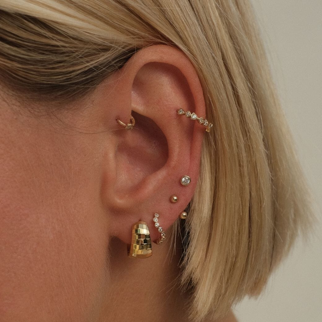 You don't have to tell us twice! Our Walt disco hoops are guaranteed to get you in the mood for anything. Super chic, juxtaposing a bold motif with a subtle dome hoop setting, you'll be turning up the volume on your Spotify Wrapped. Style with pointed toe shoes or dad sneakers. Created with a sterling silver base and utilizing luxury 14 karat gold plating, these Adorn Luxe hoop earrings are everything you love about our demi-fine jewelry collection.